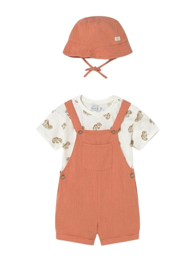 Conjunto com jardineira Mayoral Camaleão laranja para menino.