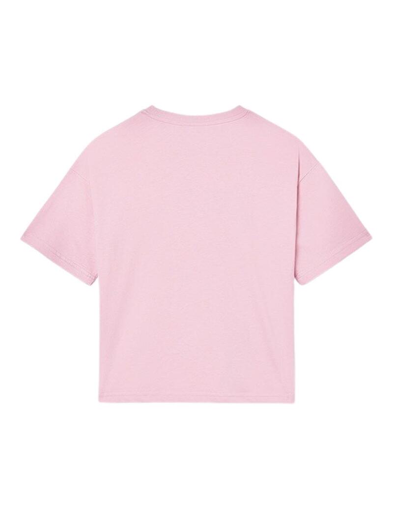 Camiseta Mayoral. Modelo Coquetel. Cor rosa. Gola redonda. Manga curta. Ajuste reto. Ilustração estampada na frente.