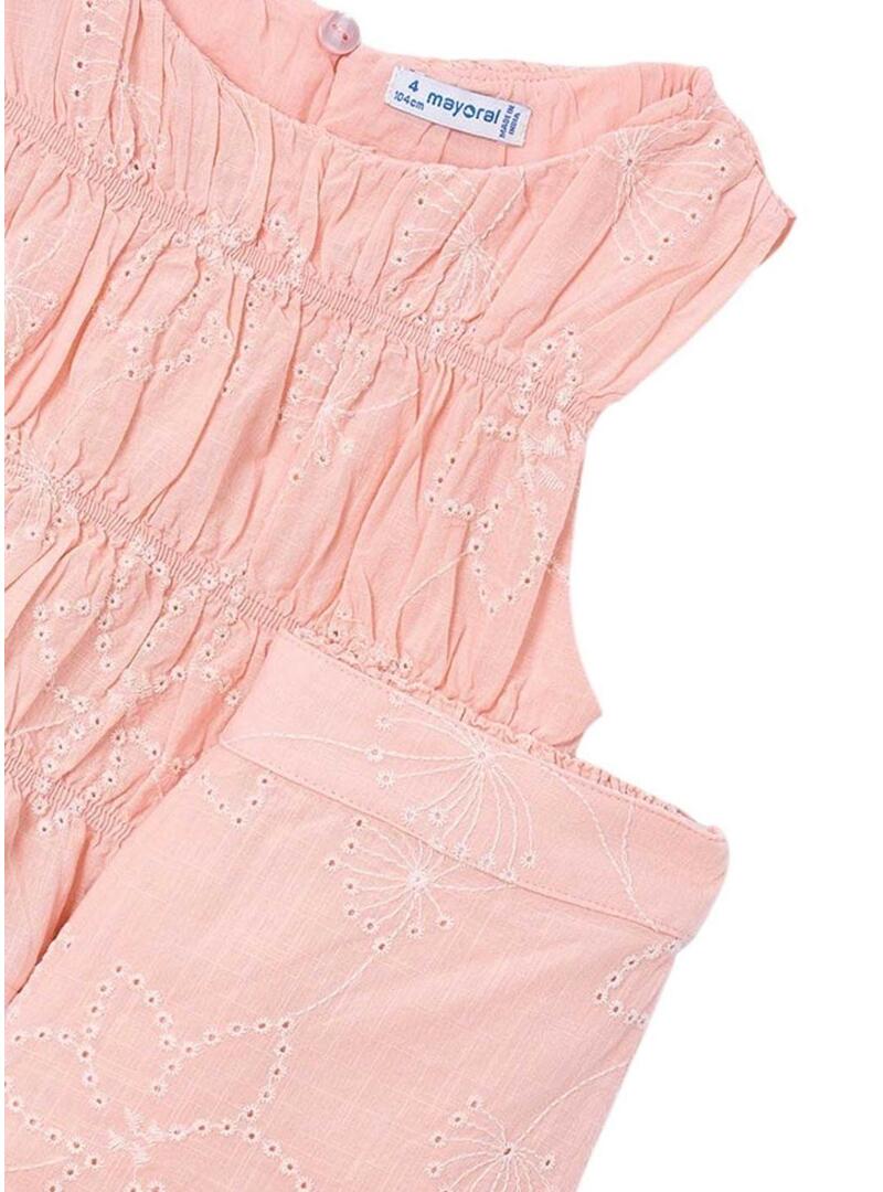 Conjunto Mayoral bordado rosa para menina.