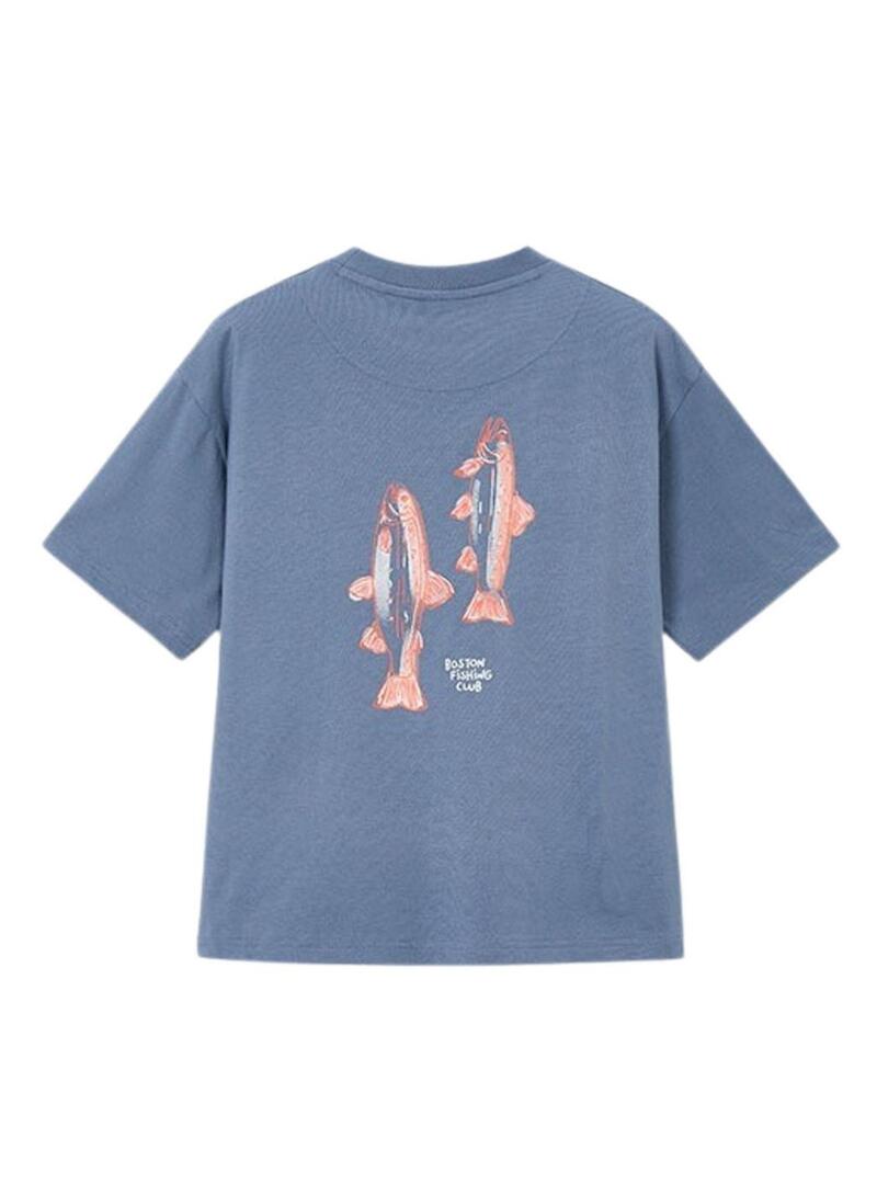Camiseta Mayoral Boston Fishing Club azul médio para criança