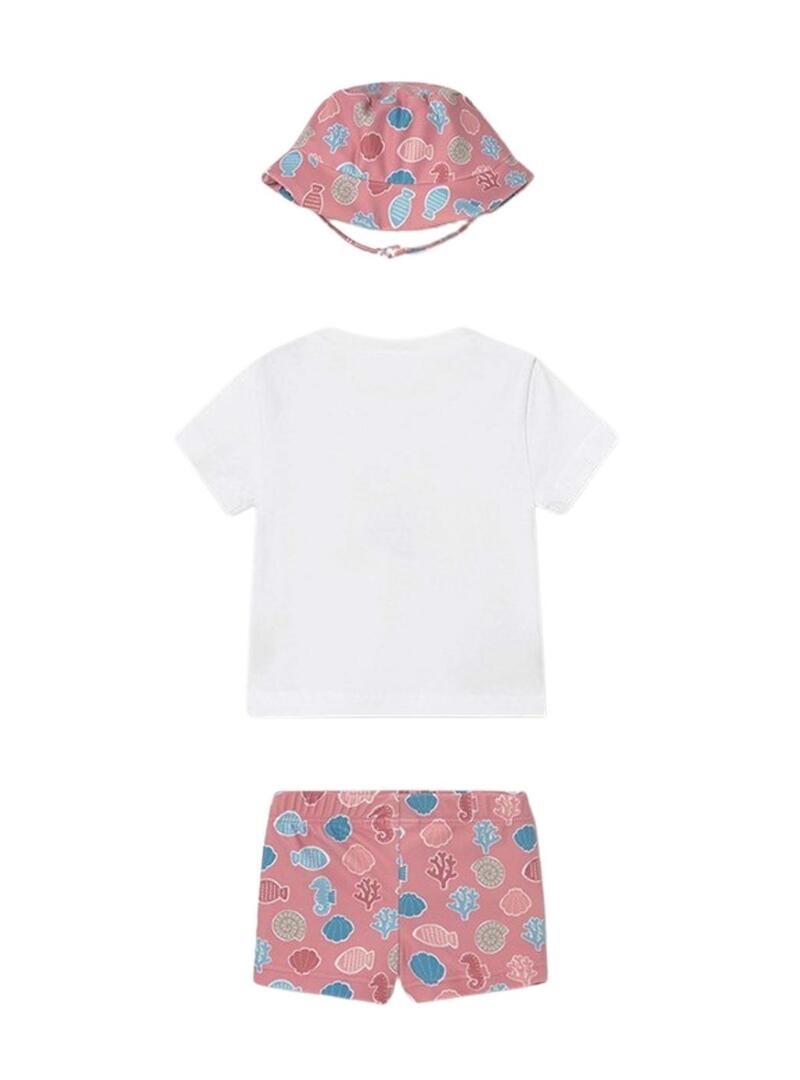 Conjunto Mayoral peixe branco e coral com gorro para bebê