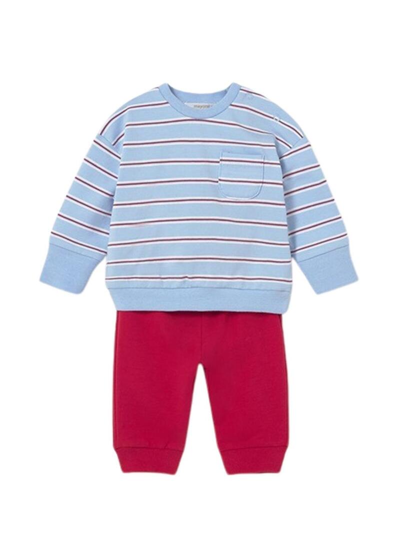 Conjunto Mayoral dos looks esportivos azul e vermelho para bebê.
