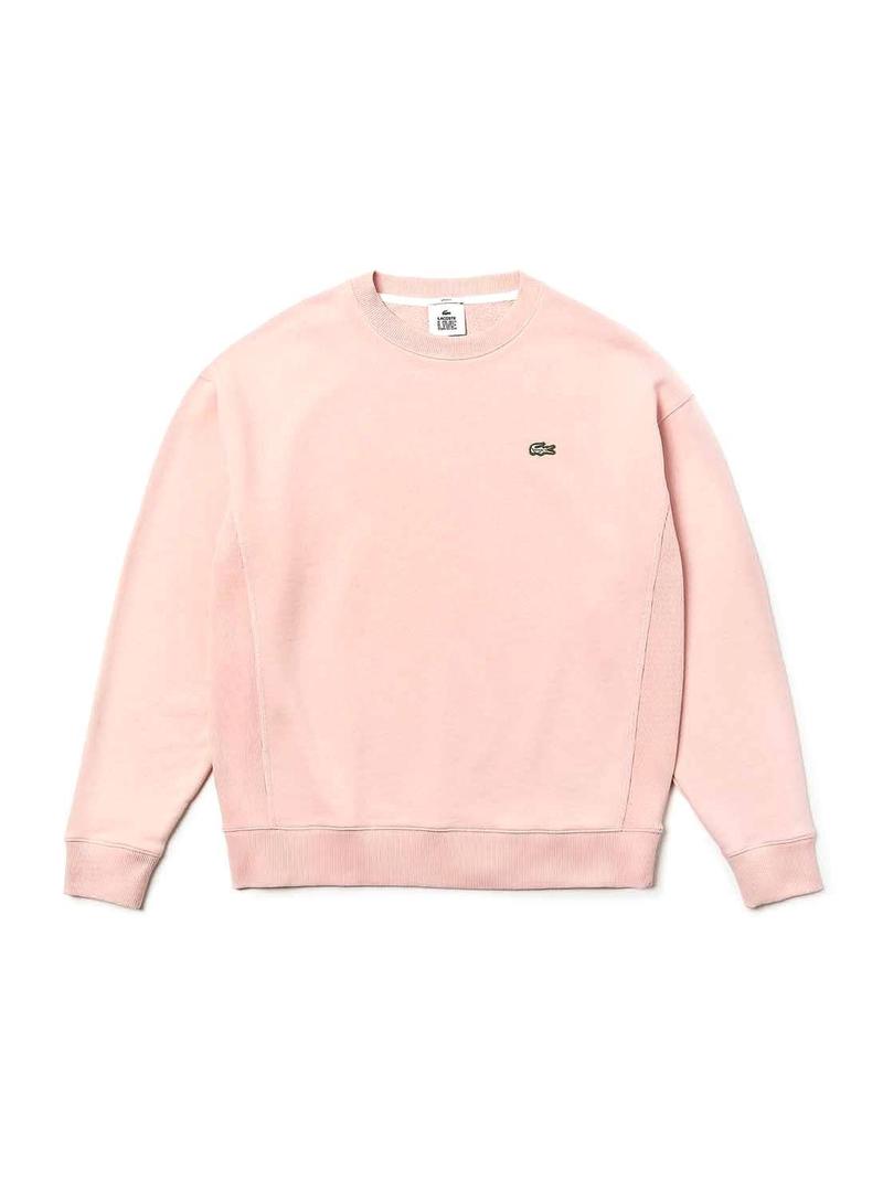 Sweat Lacoste Live. Unissex Cor rosa. Decote redondo. Corte folgado. Painéis corrugados nas laterais. Crocodilo bordado no peito. Manga comprida.