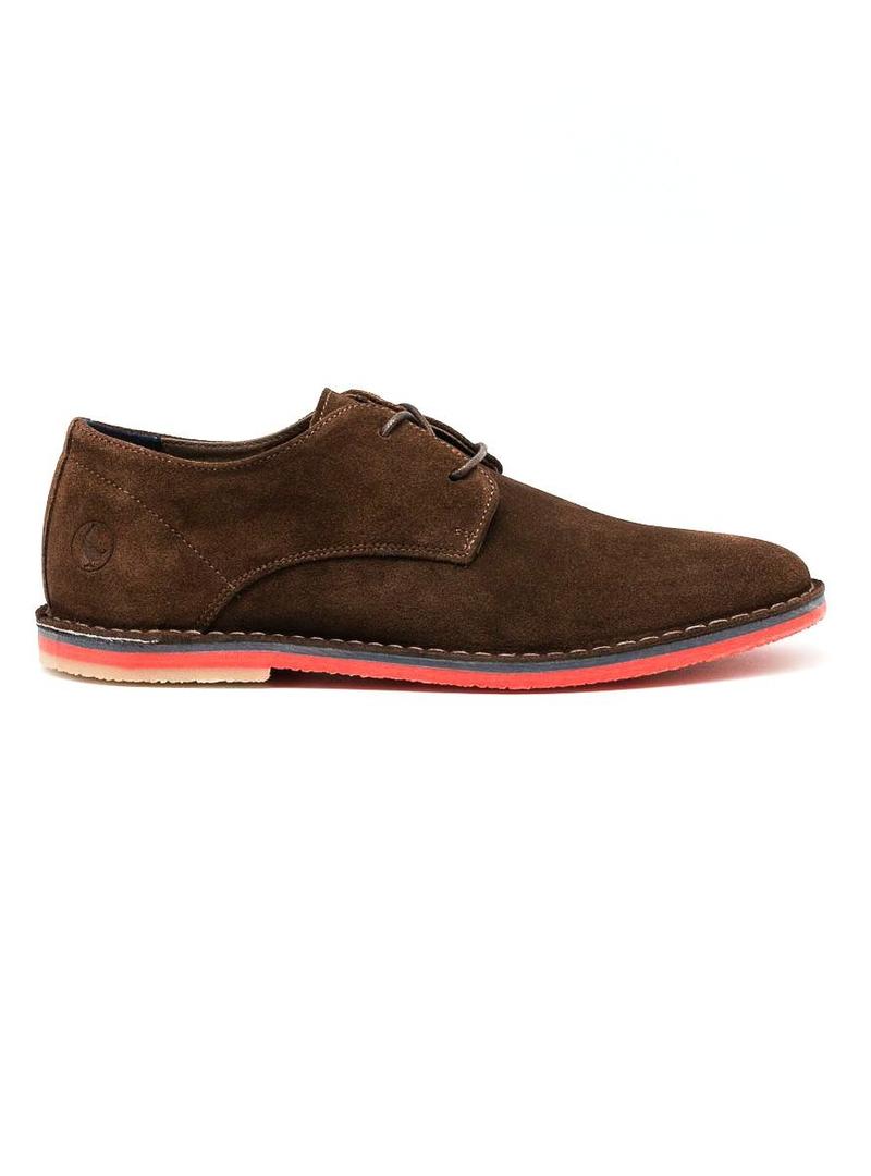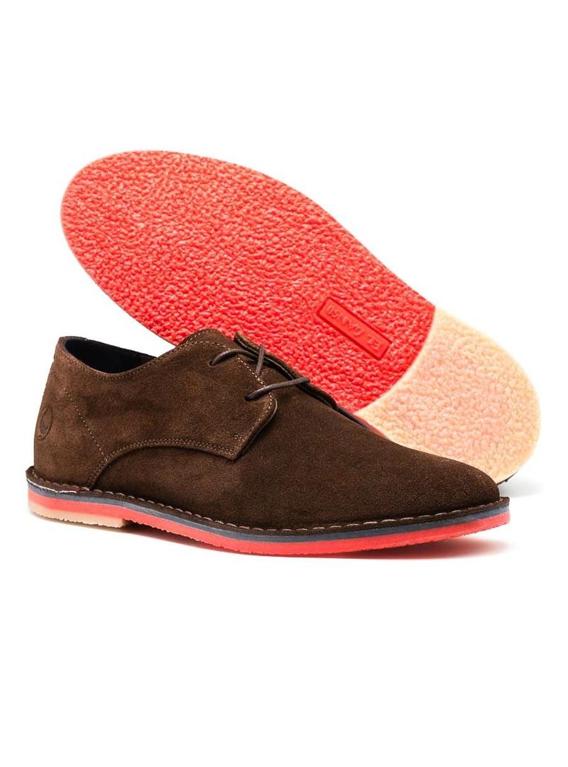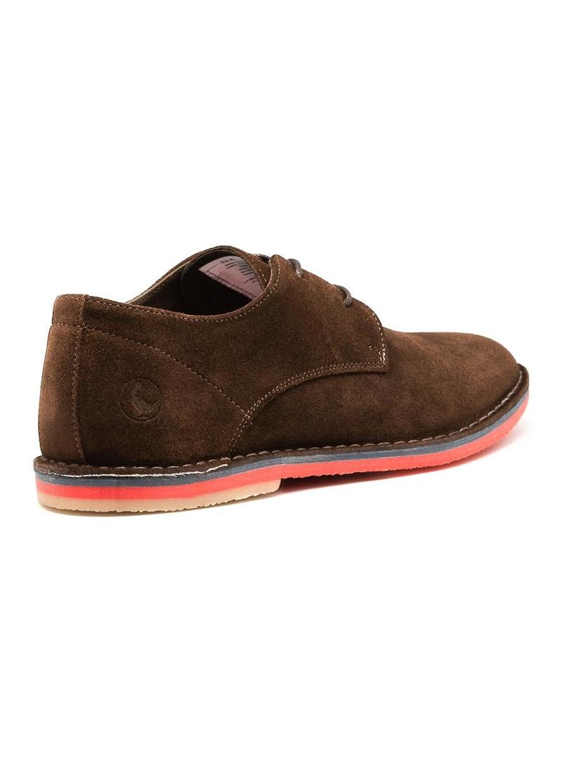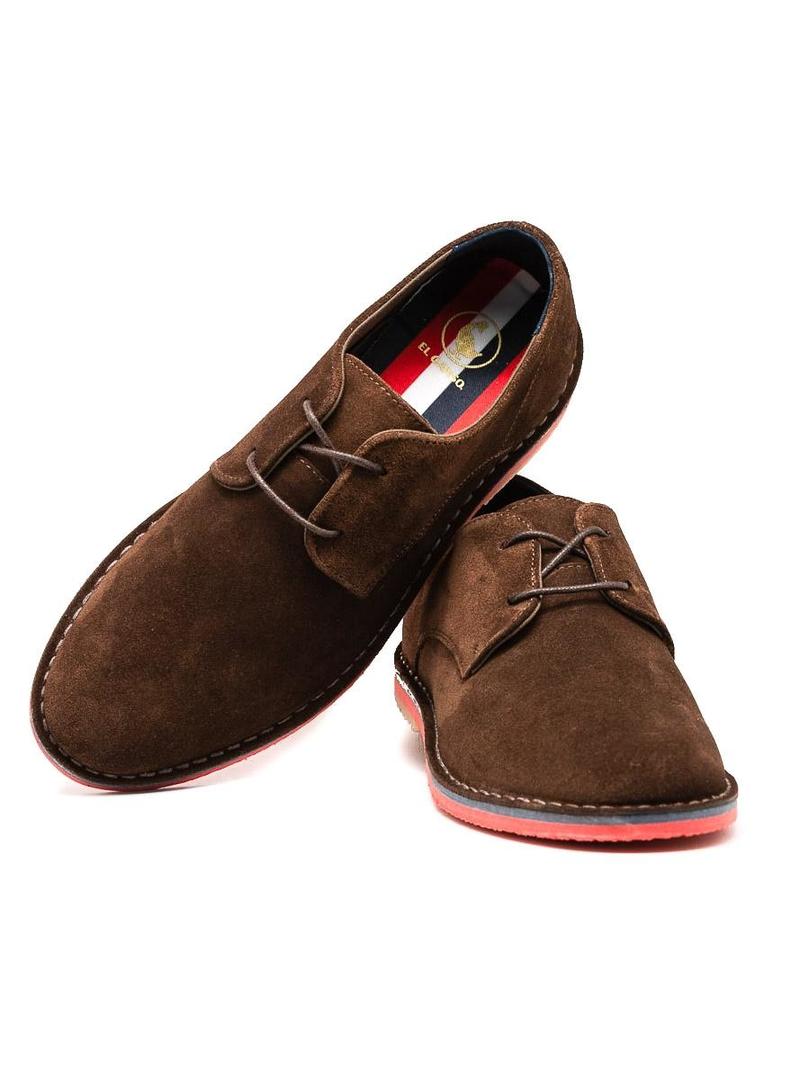 Sapato El Ganso. Modelo Guerrero. Cor marron. Sola no índice con. Fecho de atacadores. Feito em camurça. Logotipo no calcanhar. Forro têxtil