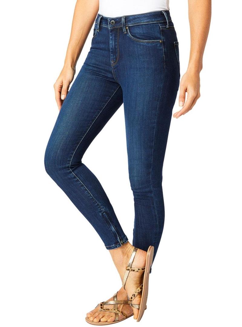Jeans Pepe Jeans. Modelo Cher High. Tecido Powerflex. Coloque o skinny. Cintura alta Perna apertada. Fecho con zíper e botão. Sob con zíper. O modelo está usando tamanho 27.