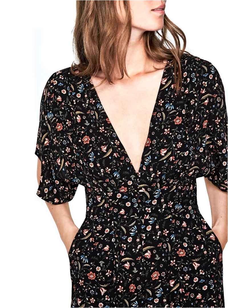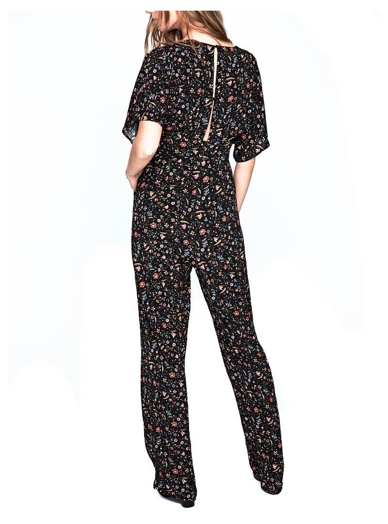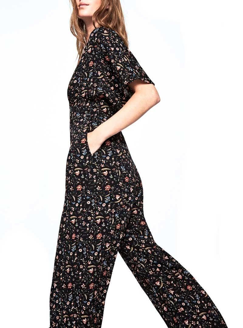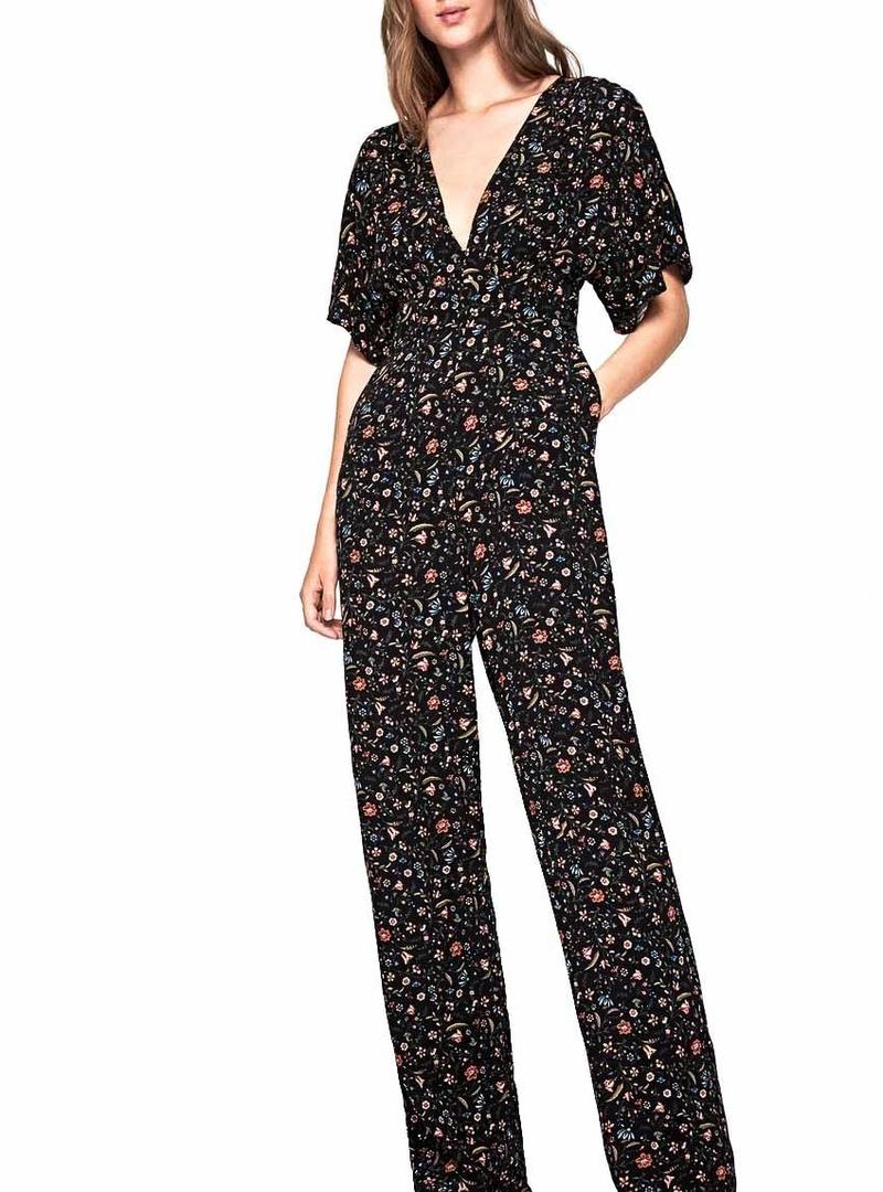 Jumpsuit Pepe Jeans. Modelo Lilian. Estampado de flores. Decote em V. Manga curta. Tecido fluido. Bolsos laterais Formato longo. Cós de borracha Perna reta. Fecho con traseiro botãopt. Regular fit A modelo está usando tamanho S.