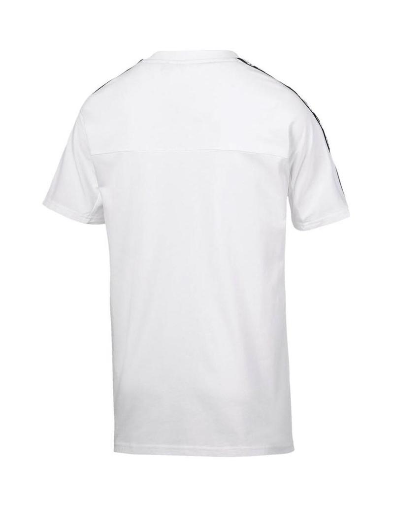 T-Shirt Puma. Modelo XTG. Cor branca. Decote redondo. Manga curta. Logotipo PUMA no peito. Bandas con logotipos da marca nas mangas. Regular fit o modelo está usando o tamanho M.