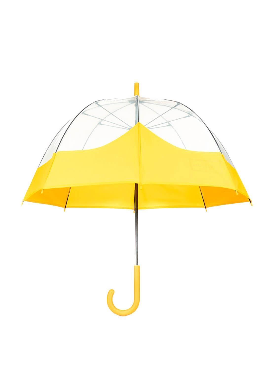 Guarda-chuva Hunter. Modelo Moustache. Cor amarelo. Bolha transparente. Logotipo da marca no baixo. Alça emborrachada para maior suporte. Hastes flexíveis e resistentes.