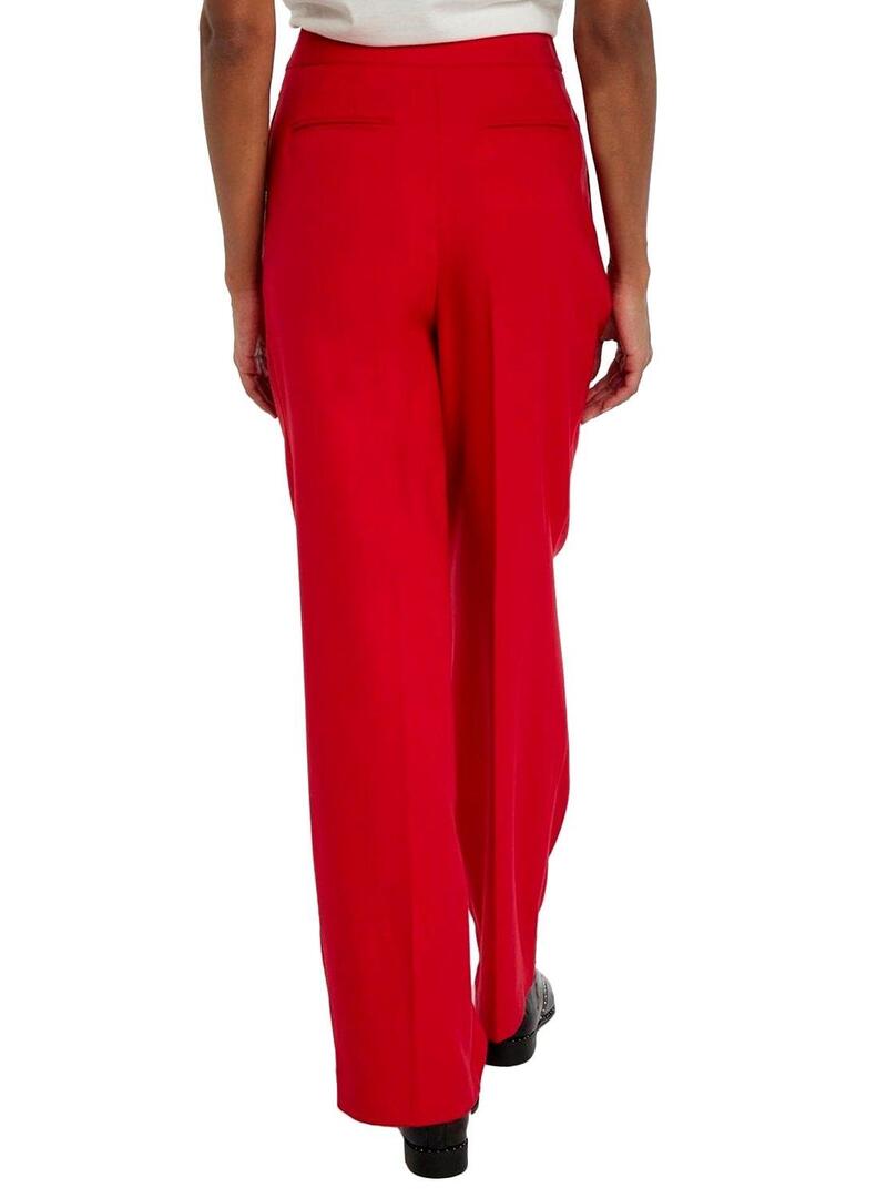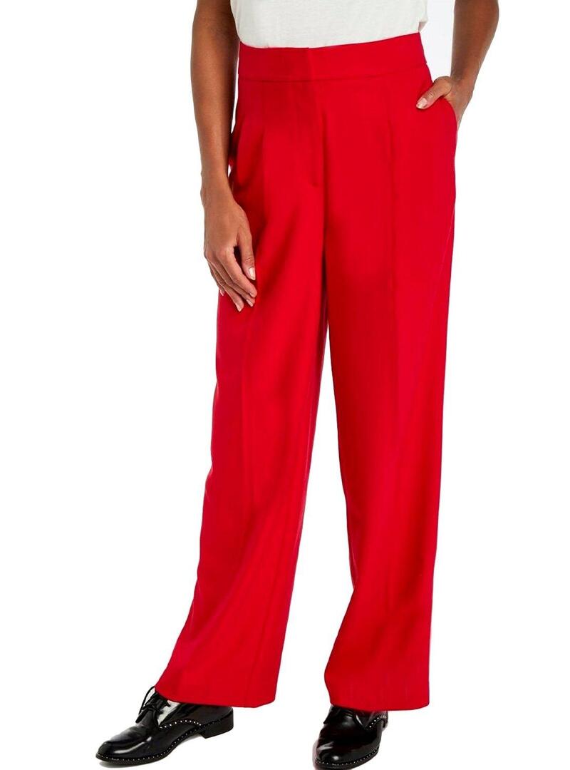 Calças Naf Naf. Com pinça Cor vermelha Corte em linha reta. Cintura alta. Bolsos laterais Bolsos falsos nas costas. Fecho con zíper e gancho oculto. O modelo está usando tamanho 36.
