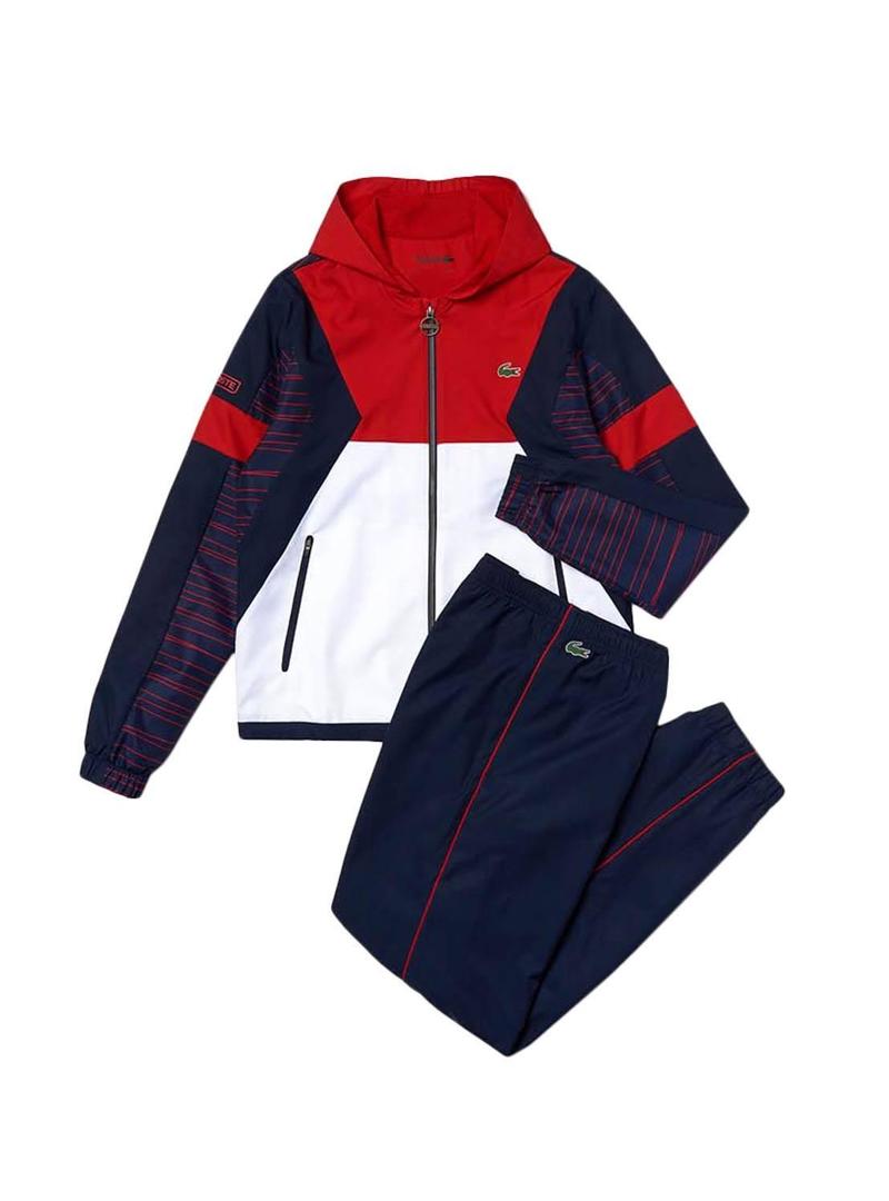 Fato de treino Lacoste. Modelo WH8612. Multicolor Jaqueta Fecho con do zíper, cordões ajustáveis no capuz con, dois bolsos con zíper e punhos con elástico. Calças con zíper na parte inferior, cintura elástica e bolsos con zíper.