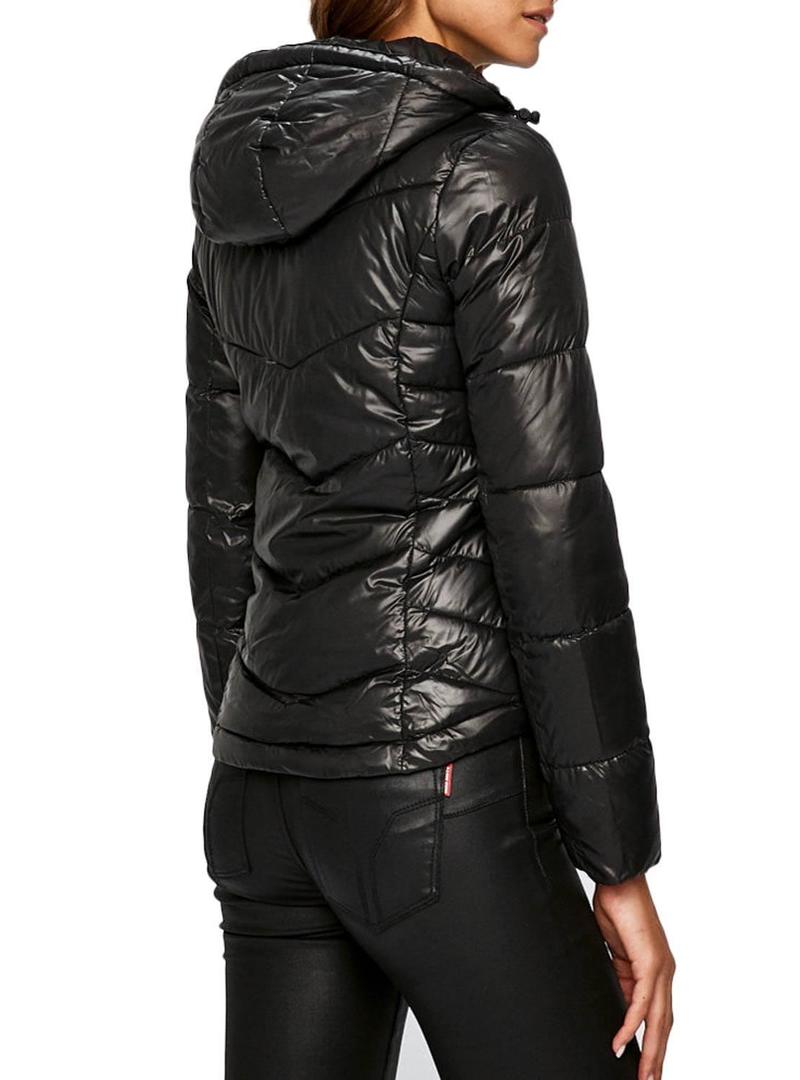 Casaca Pepe Jeans. Modelo Imani. Cor preta. Fecho de zíper. Decote alto. Capuz destacável Dois bolsos laterais Logotipo estampado na manga.