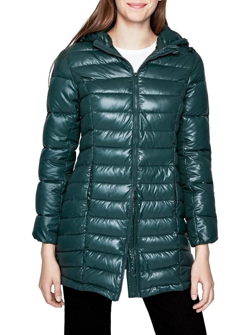Casaca Pepe Jeans. Modelo Alice. Cor verde. Fecho de zíper. Capuz destacável Corte ajustado. Dois bolsos laterais Logotipo estampado na manga. Longo pela coxa.