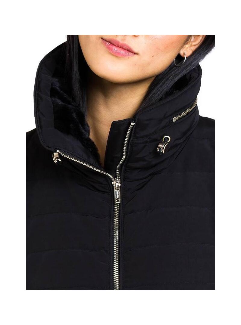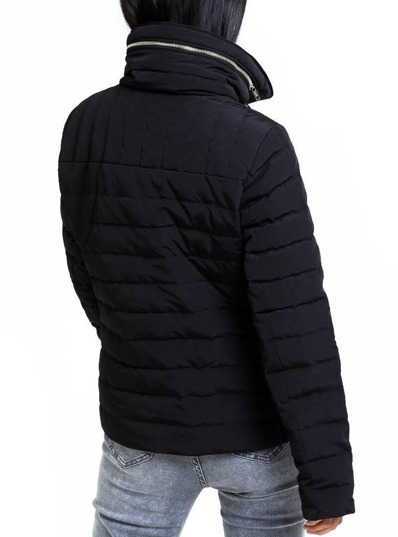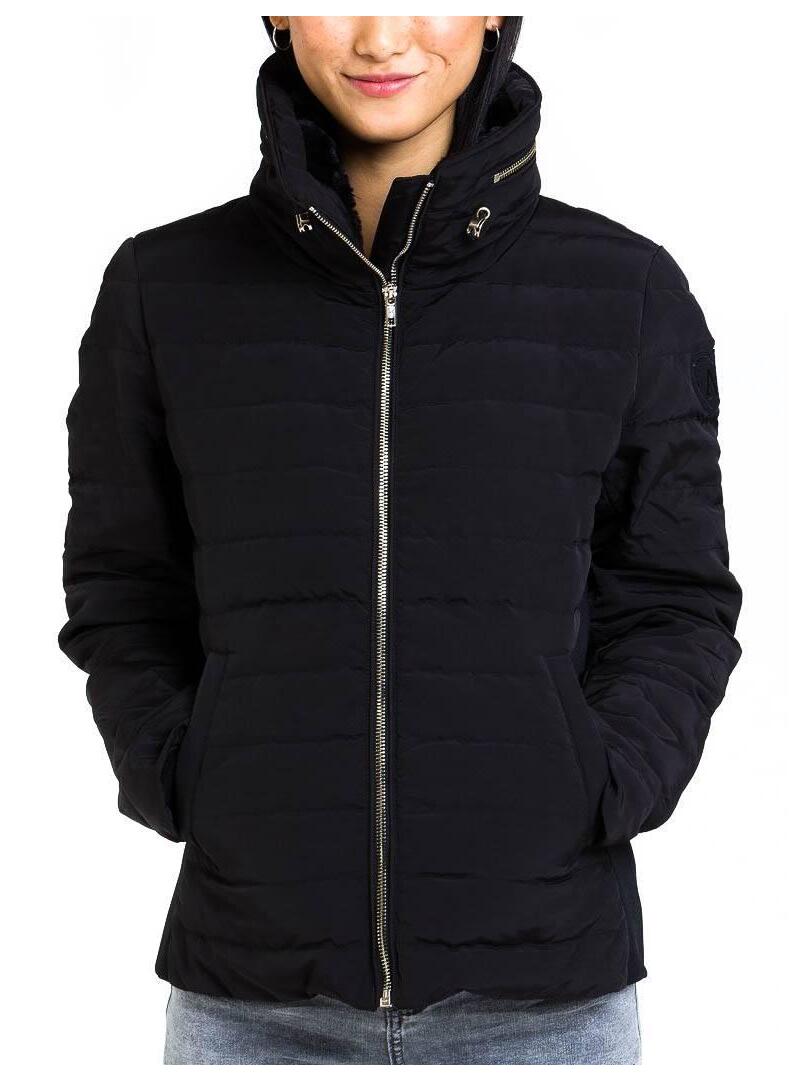 Casaca Naf Naf. Acolchoado Cor preta. Manga comprida. Decote con alto zíper. Capuz escondido no pescoço. Lado elástico Bolsos laterais Detalhes da marca Fecho con zíper. O modelo está usando tamanho 36.