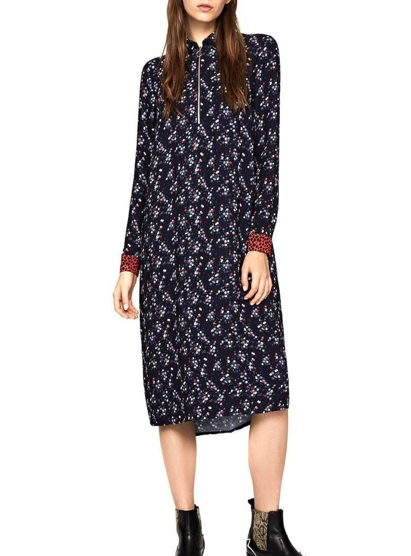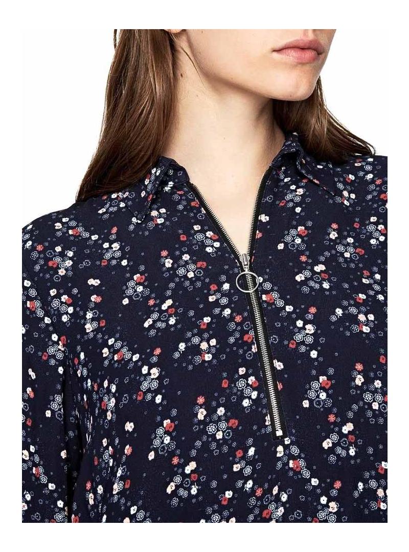 Vestido Pepe Jeans. Modelo Penelope. Cor marinha. Manga comprida. Algemas en contraste. Estampado. Fecho de correr frontal. Regular fit.