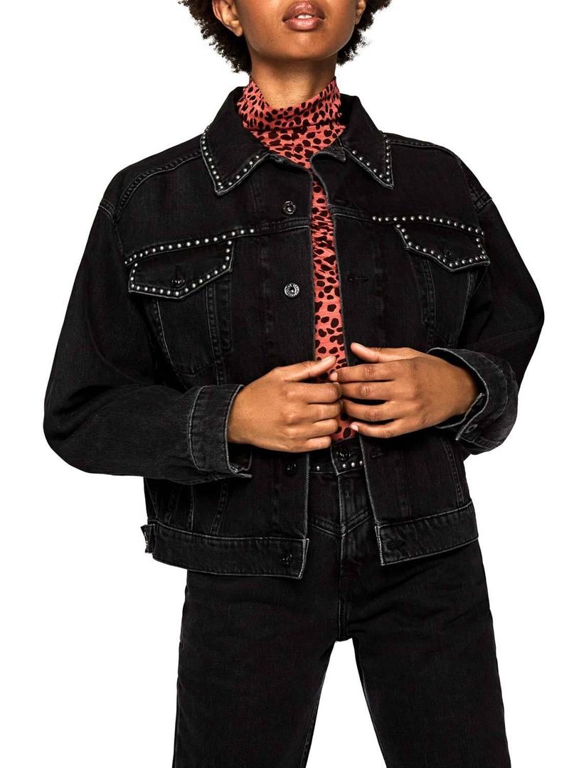 Jaqueta Pepe Jeans. Modelo Turner. Cor preta. Manga comprida. Fecho frente do botãoes. Detalhe de pérolas. 2 bolsos frontais. Regular fit.