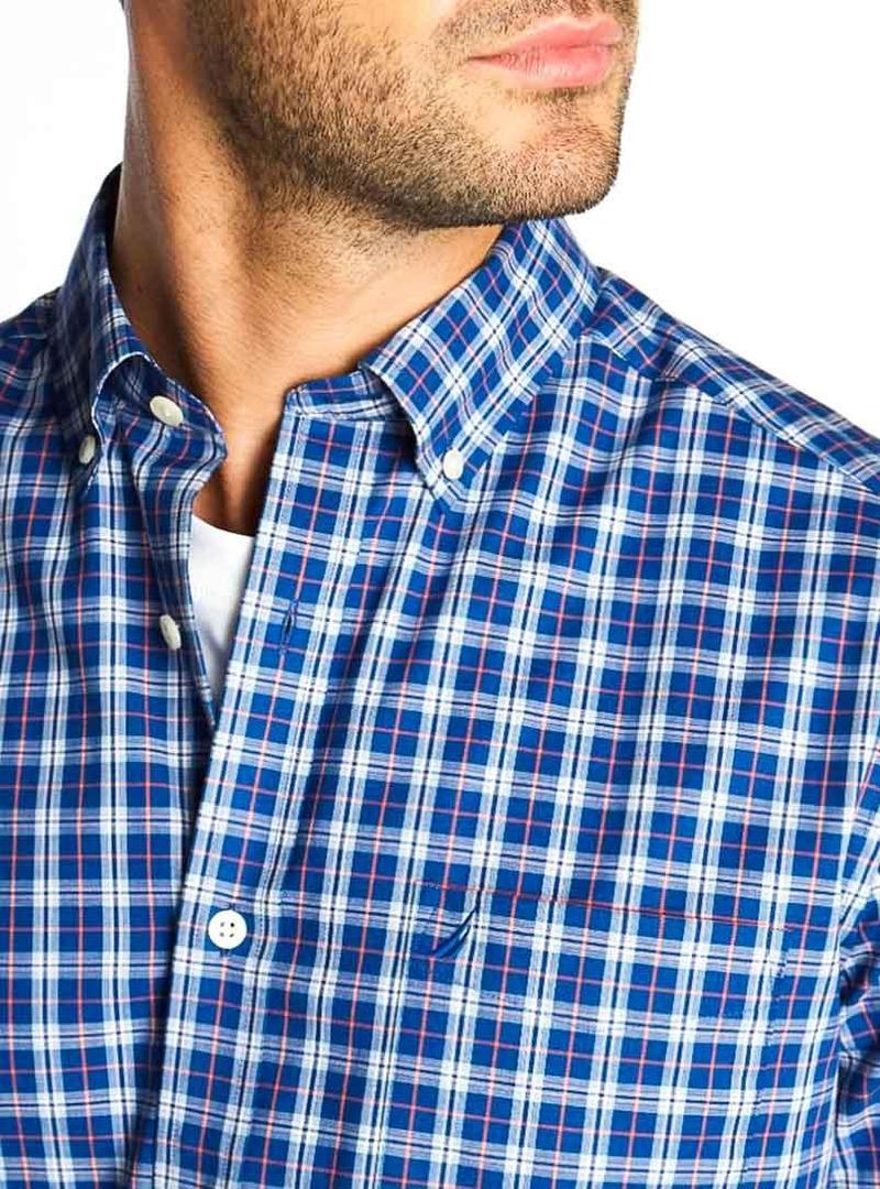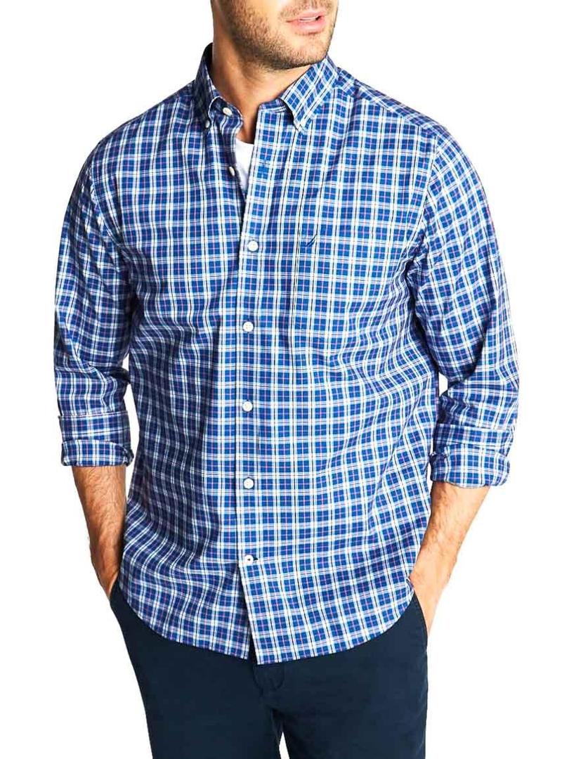 Camisa Nautica. Modelo Manta. Cor azul. Estampado geométrico. Fecho de botãoes. Ajuste regular. Bolso no peito. Logotipo bordado.