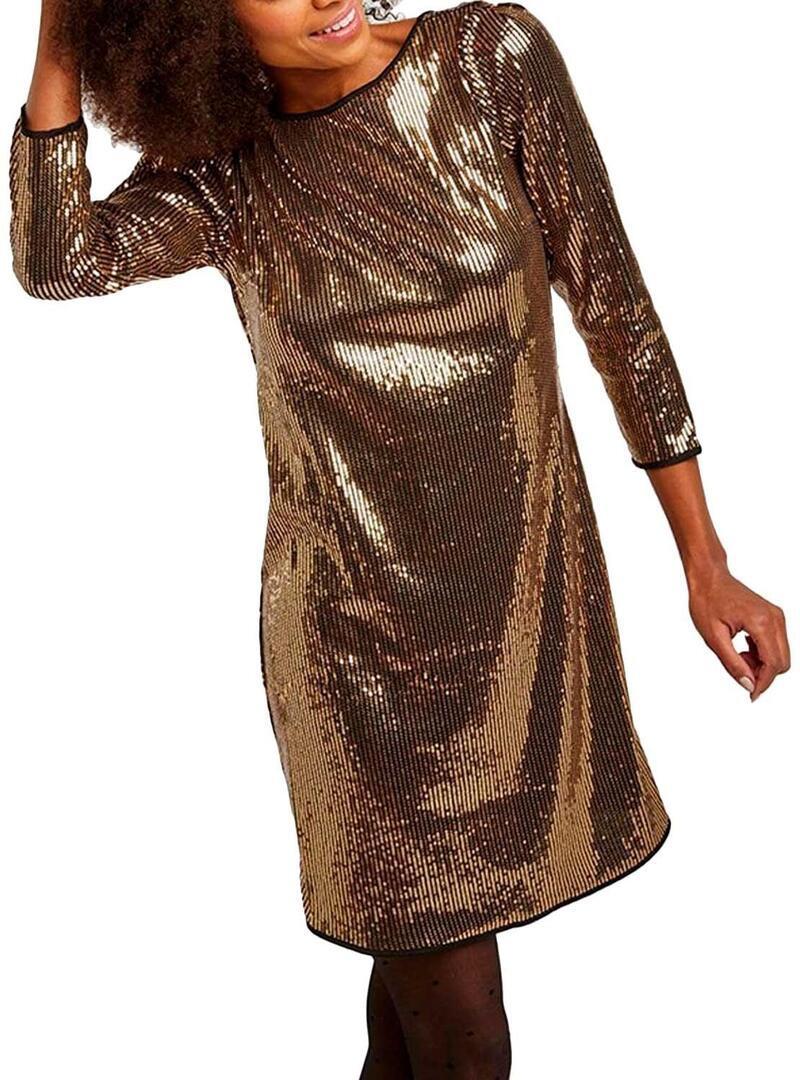 Vestido Naf Naf Lantejoulas Ouro Para Mulher