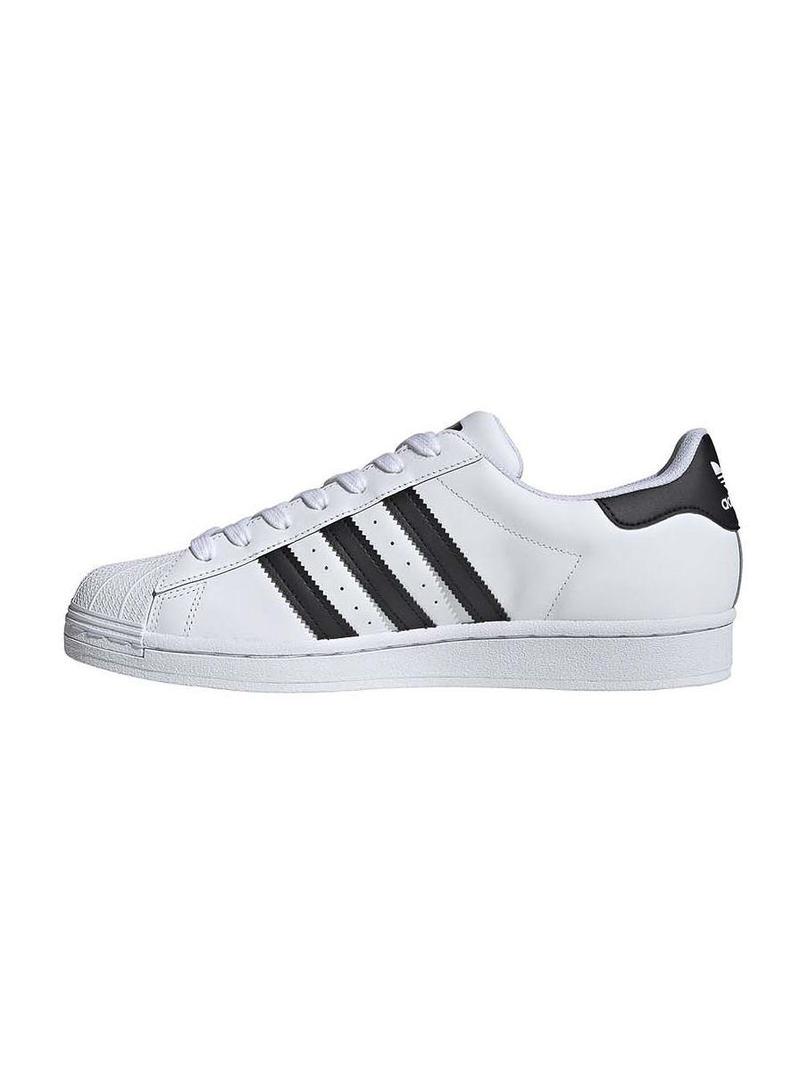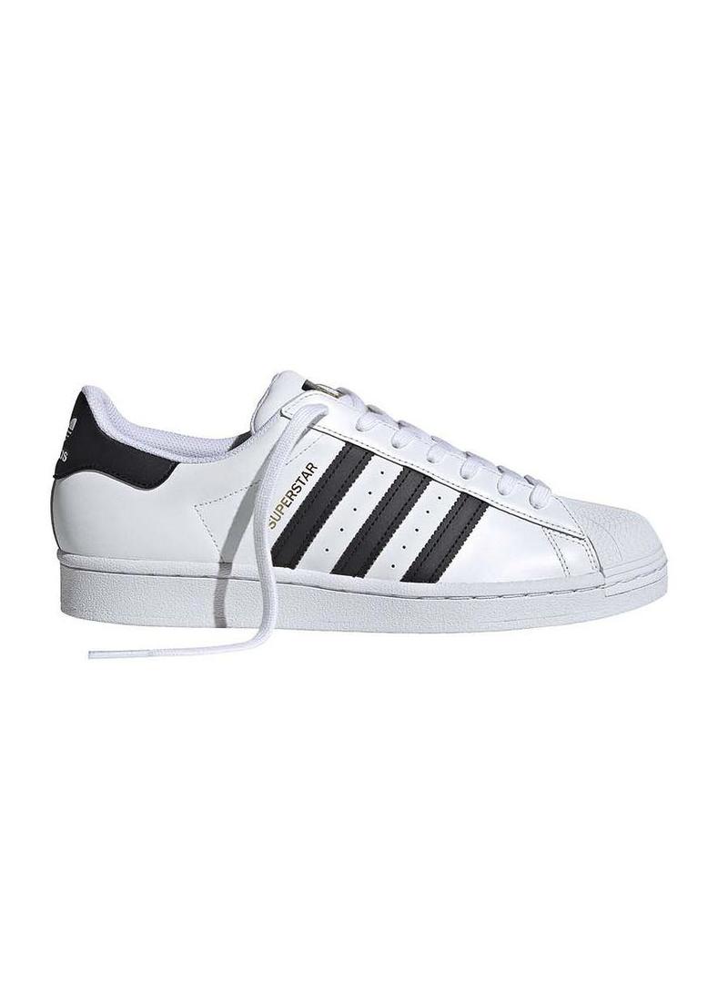 Sapatilhas Adidas. Modelo Superstar. Fecho con atacadores. 3 bandas laterais Adidas Superstar logo. Fecho de atacadores. Parte superior do coiro. Sola de borracha
