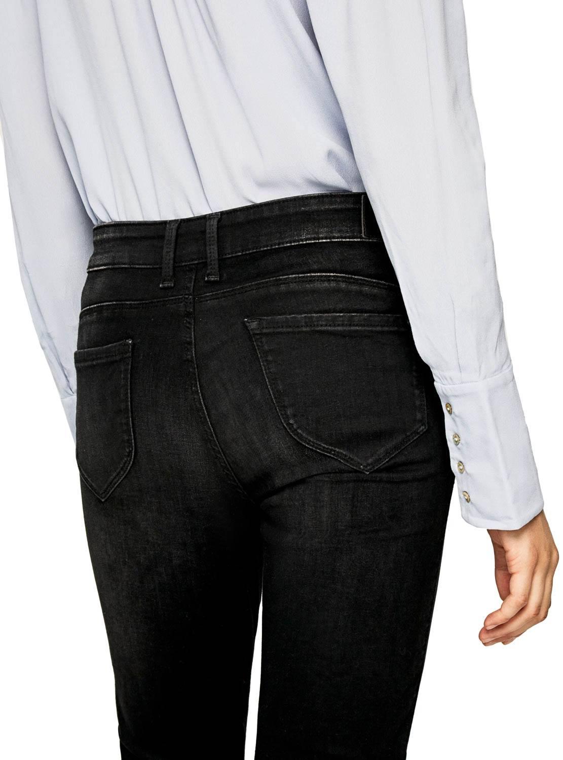 Jeans Pepe Jeans. Modelo Zoe. Cor preta. Tecido flexível. Super skinny. Cintura média skinny perna. Lavagem usada preta autêntica. 5 bolsos A modelo está usando tamanho S.