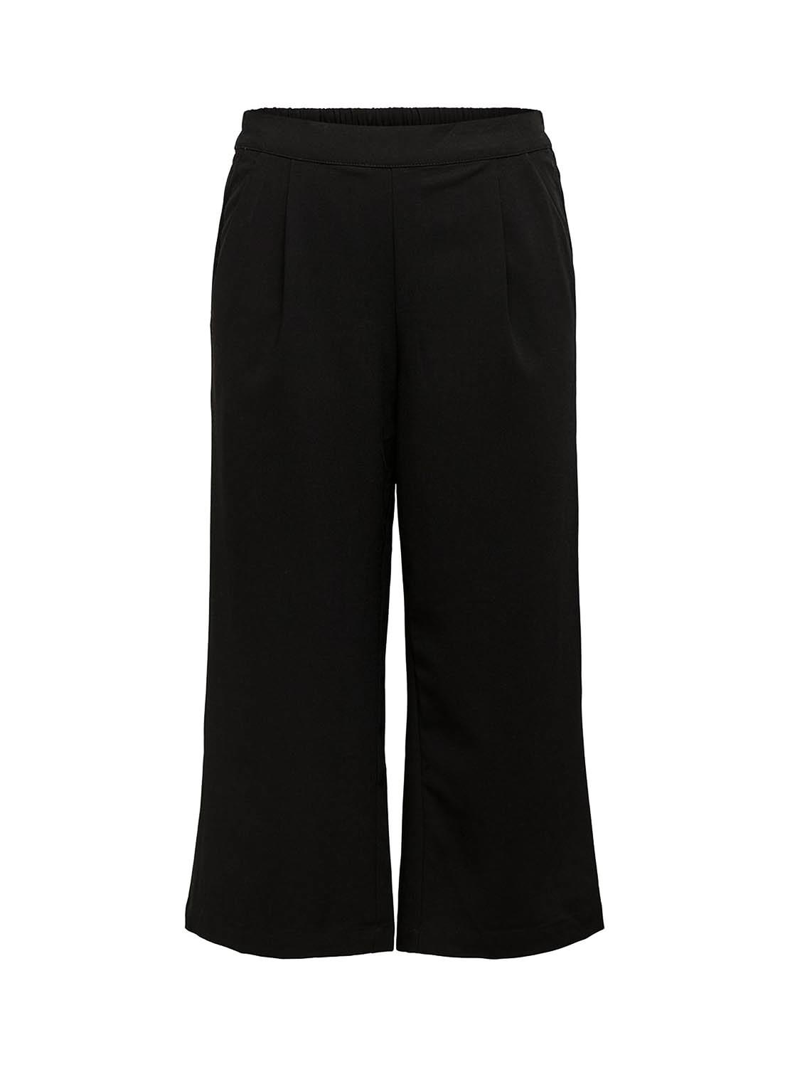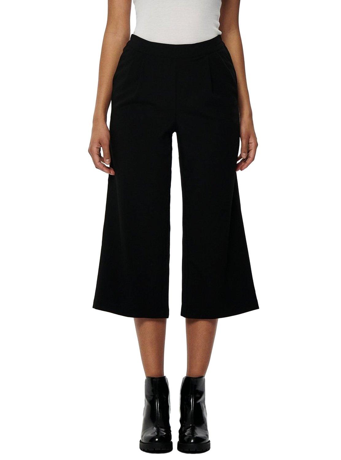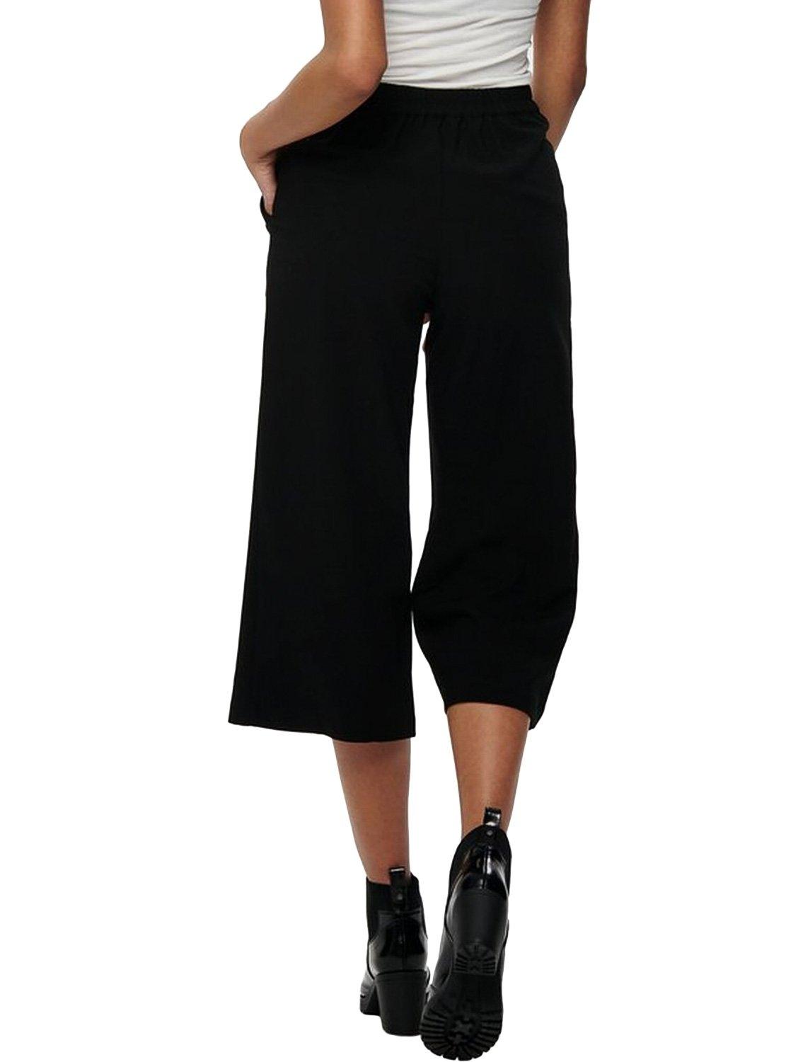 Calças Only. Modelo Caisa. Cor preta. Estilo Coulotte. Cintura alta. Muito abaixo do joelho. Cintura elástica.