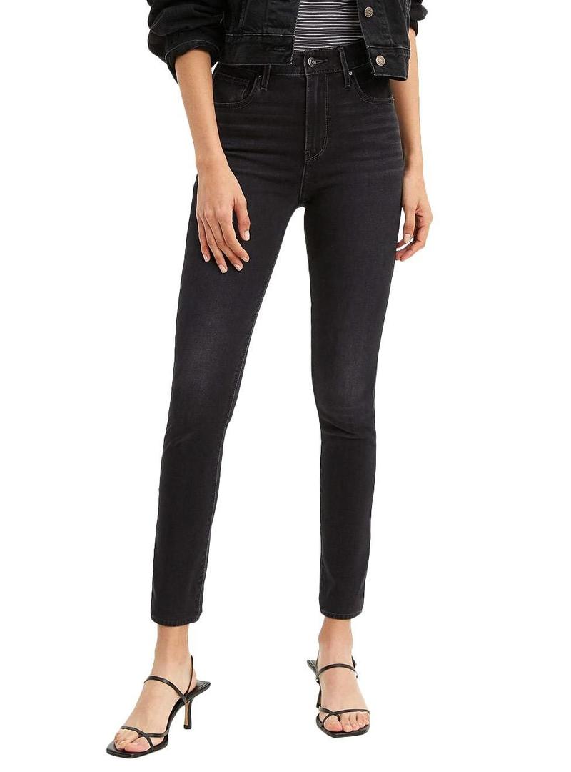 Jeans Levis. Modelo 721 High Rise. Cor preta. 5 bolsos Fecho de botão e zíper. Remendo da marca nas costas. Ajuste Skinny.