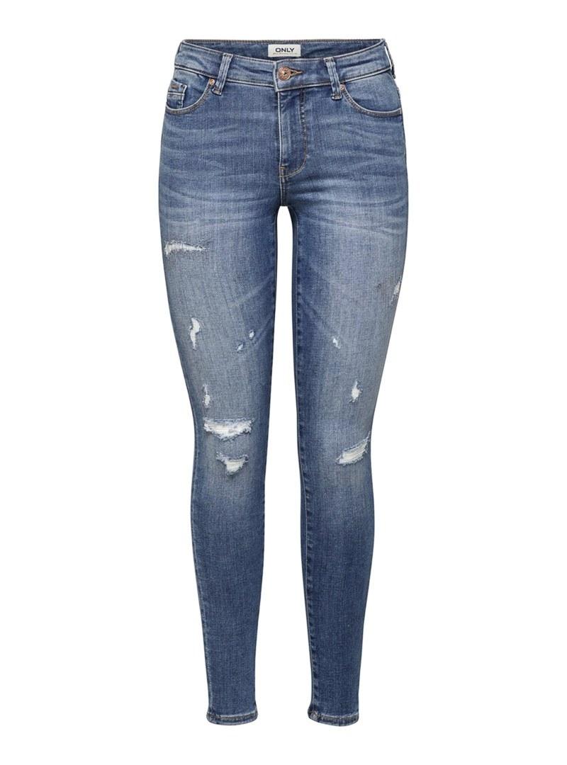 Jeans Only. Modelo Carmen. Denim Médio. Fecho dianteiro con botão e zíper. Projeto con decorativo quebrado. 5 bolsos Tecido elástico.