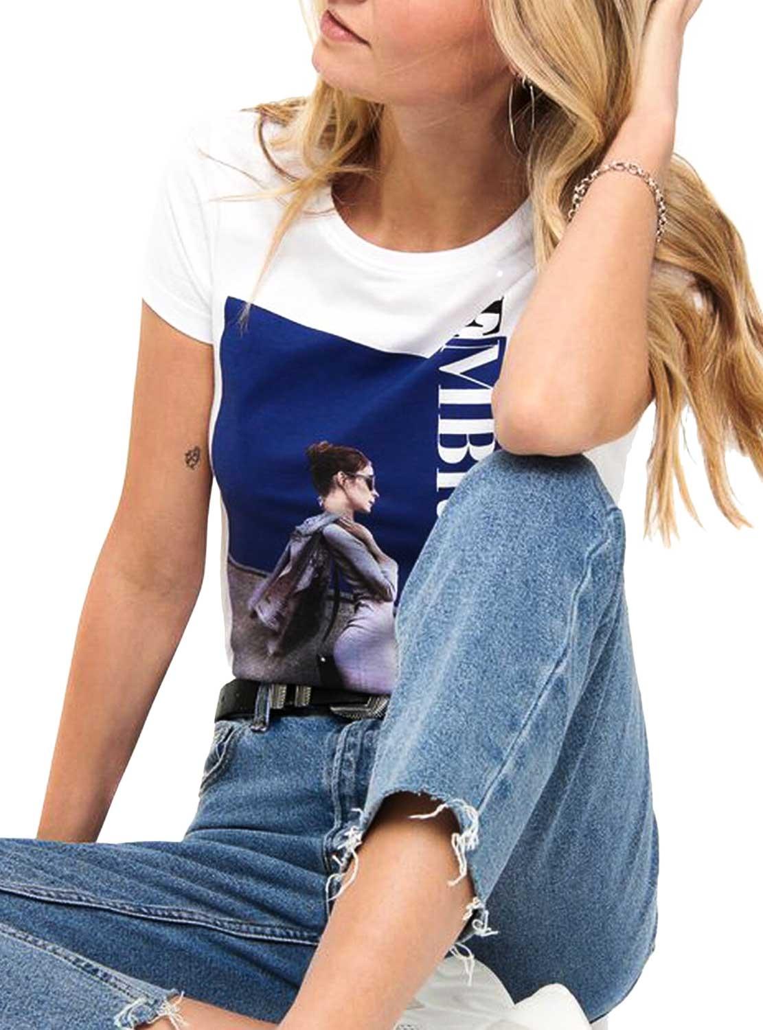 T-Shirt Only. Modelo Abraço. Cor Branco. Manga curta. Decote redondo. Ajuste regular. Impressão de foto frontal. A modelo está usando tamanho S.